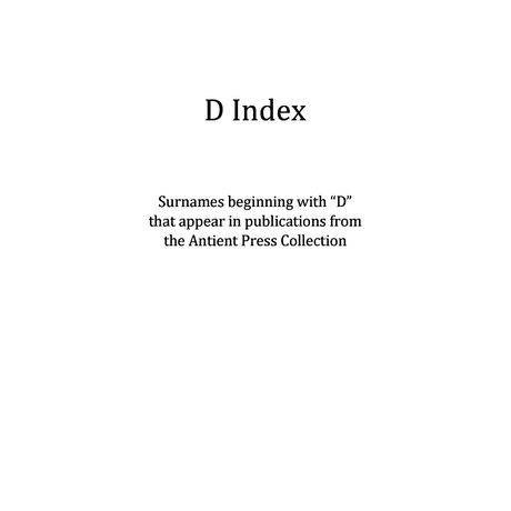 $000Unit price /UnavailableD Surname Index for Antient Press