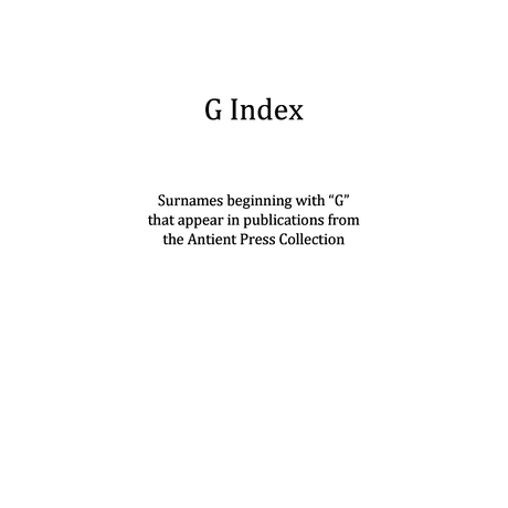 $000Unit price /UnavailableG Surname Index for Antient Press