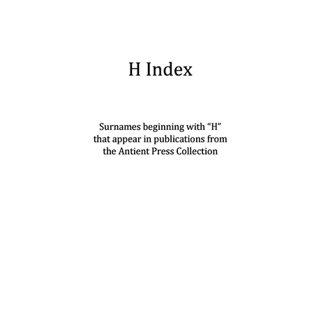 $000Unit price /UnavailableH Surname Index for Antient Press