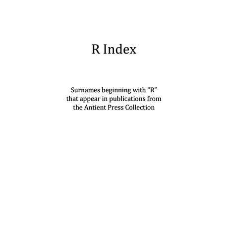 $000Unit price /UnavailableR Surname Index for Antient Press